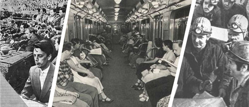 Я вспоминаю как лет десять с чем-то назад, в самое гнилое и безнадёжное время я с каким-то страхом смотрел на тётку лет пятидесяти, торговавшую в электричке дверными ручками. Этими ручками ей на работе заплату выдали, было тогда так принято, «бартер». Идёт она с этими нелепыми ручками по вагону, говорит что-то про свой завод, а в лице такое… И безнадёжность, и унижение, и усталость, и «хоть бы сдохнуть», и «хоть бы сдохли». Ведь человек с таким лицом имеет право на всё, например, пустить под откос эту электричку. А эта тётка пятидесяти с лишним лет с тридцатью, поди, годами трудового стажа, заработавшая баул дверных ручек, ничего такого не сделала, и я благополучно добрался в свой НИИ (где не платили даже ручками, но у меня-то были выбор, молодость и надежда)… Я почти уверен – она каждое утро совершала этот ритуал преображения жилища и так же делали другие, и их было много; может, страна потому и выжила… Смешно? А вдруг и правда потому? Со стороны это, может, выглядит глупо, но для меня эти советские кресла-кровати символ того, что якобы не существует: русской воли к порядку и даже русской педантичности. Сначала до щелчка от себя, потом с силой на себя или наоборот… P.S.: Впрочем, что бы градус пафоса снизить и от реальности не отрываться, дам ещё один штрих. Знакомая рассказывала: она с мужем к сорока годам обрела свою квартиру (наследования, обмены, доплаты, кредиты, не важно), где была настоящая спальня, первая в её жизни. И купили они кровать во всю спальню. «Легла я на неё и почувствовала – спина-то у меня изувеченная и похоже уже навсегда». Такие дела…. Работа и отдыхПрислушайтесь: «Работа и отдых» «Как советский человек работает и как отдыхает?» «Всё ли есть у трудящихся для работы и отдыха?» «Мне вообще, дадут отдохнуть после работы или нет?!» В принципе, ничего нового, специфически советского в таком двухчастном делении жизни на «работу» и «отдых» нет. Индустриальная эпоха сделала две вещи: угробила натуральное хозяйство и, как следствие, разделила сферу труда и сферу быта. Теперь каждый или почти каждый из нас вынужден проживать две и более отдельных жизни, последствия это всё имеет огромные, например, бьёт по семье и на демографию это обстоятельство влияет куда более сильно, чем пресловутый гедонизм. Если раньше воспитание и социализация детей происходили в ходе их совместного с родителями труда на благо семьи, то теперь это совершенно отдельные и во многом не контролирумые старшими процессы. СССРовский опыт здесь выделяется только в одном: советский гражданин есть, прежде всего, трудящийся (подобно тому, как западный, прежде всего, налогоплательщик). Как следствие, не только трудовая, экономическая активность, но и вся (или почти вся) социальная жизнь человека стала протекать в рамках трудового коллектива: Летний детский лагерь? – При заводе. Выйти на дежурство в составе «народной дружины»? – От цеха. Обсудить поведение «пьяницы и дебошира»? – На товарищеском суде в фабричном актовом зале. Стенгазету нарисовать? – По поручению бригады. Санаторий? – Наш, отраслевой! Купить дефицитные продукты или товары? – От профкома.